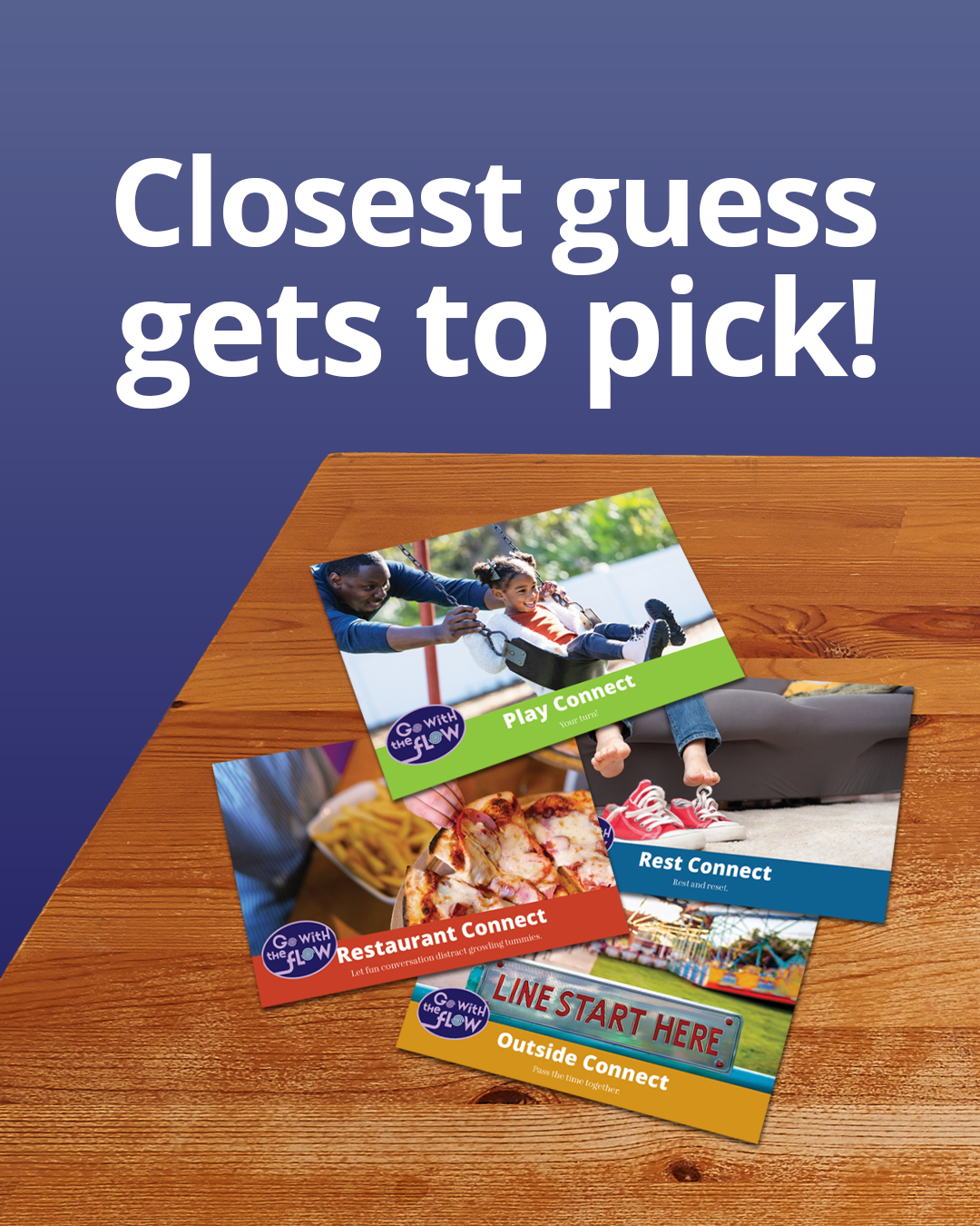 Have the oldest person in your family think of a number between 1 and 20. Whoever in your family guesses closest gets to pick which Connect Card from your Go With the Flow PowerPak to try this week.